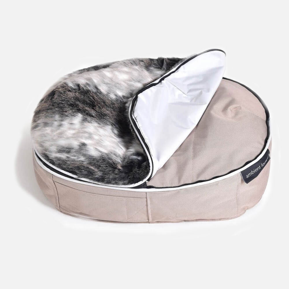 Basen finns i två färger som kompletterar överdraget. Välj mellan den beige färgen Sandstorm och den mörkgrå Supernova. Låt din hund få det bästa a la vilddjuret vakna!