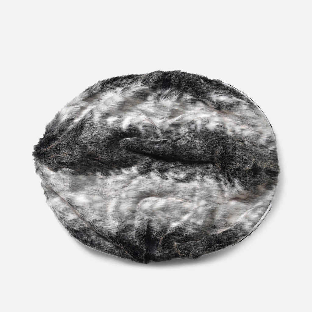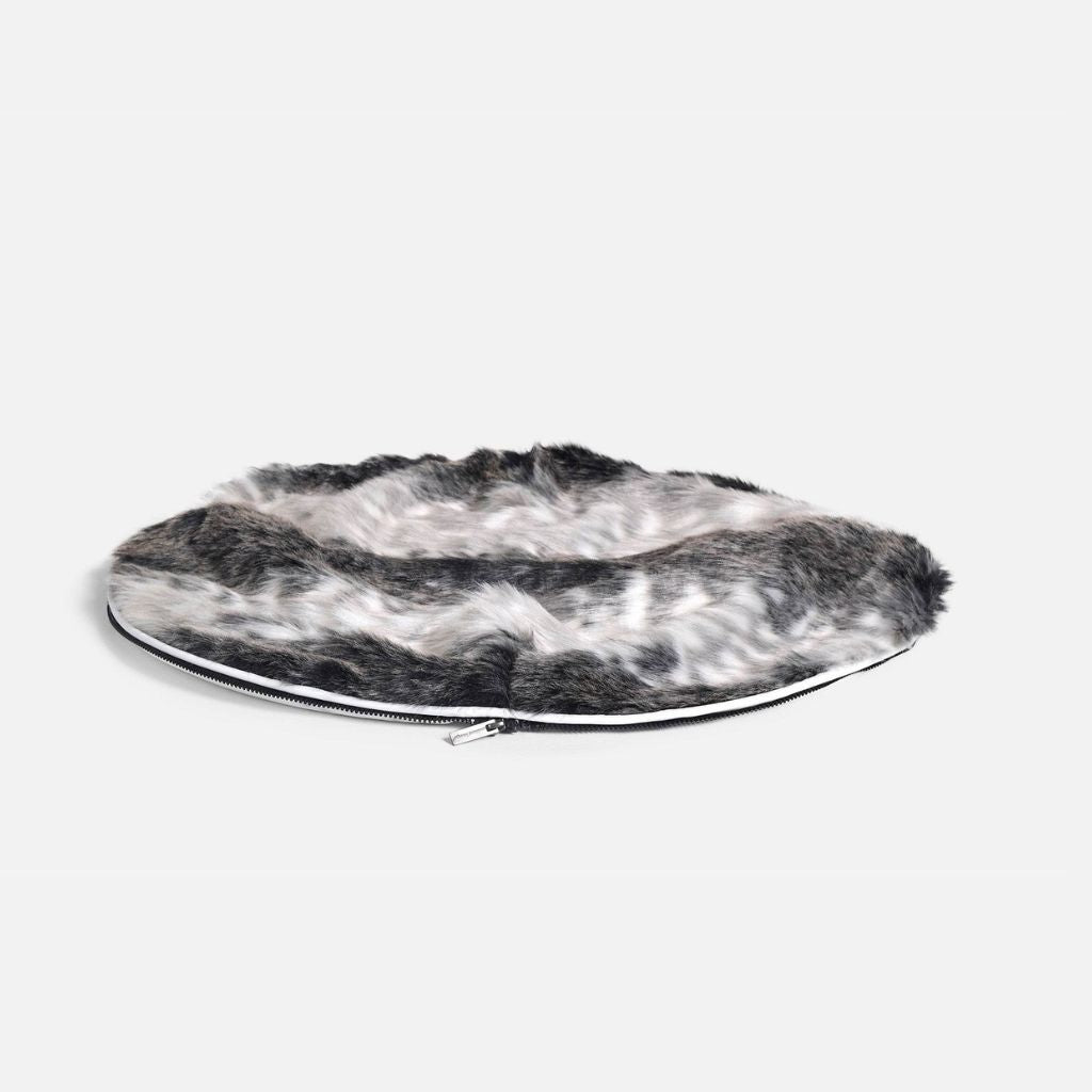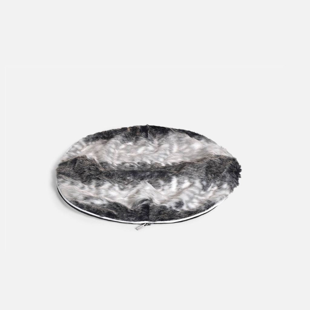 Färgen Wild Animal har ett fint fuskpälsöverdrag i en blandning av grått och vitt. Tyget har en fin nyans som gör att den mörka färgen inte blir för hård. Det avtagbara överdraget har ett mönster som påminner om pälsen hos ett vilt djur. Överdraget är varmt och skönt, vilket passar utmärkt under kalla vintrar Dagar. Den falska pälsen ger sängen ett unikt uttryck och passar perfekt ihop med båda baserna.