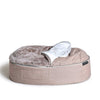 Den beige färgen, uppkallad efter den välkända kaffedrycken cappuccino, är behaglig för ögonen och lätt att kombinera med andra färger. Tyget är vävt vilket ger en vacker färgspel. Färgen på fuskpälsöverdraget kompletterar basen perfekt. Överdraget kan enkelt tas av hundsängen tack vare dragkedjan, vilket gör att sängen passar lika bra inomhus som utomhus.