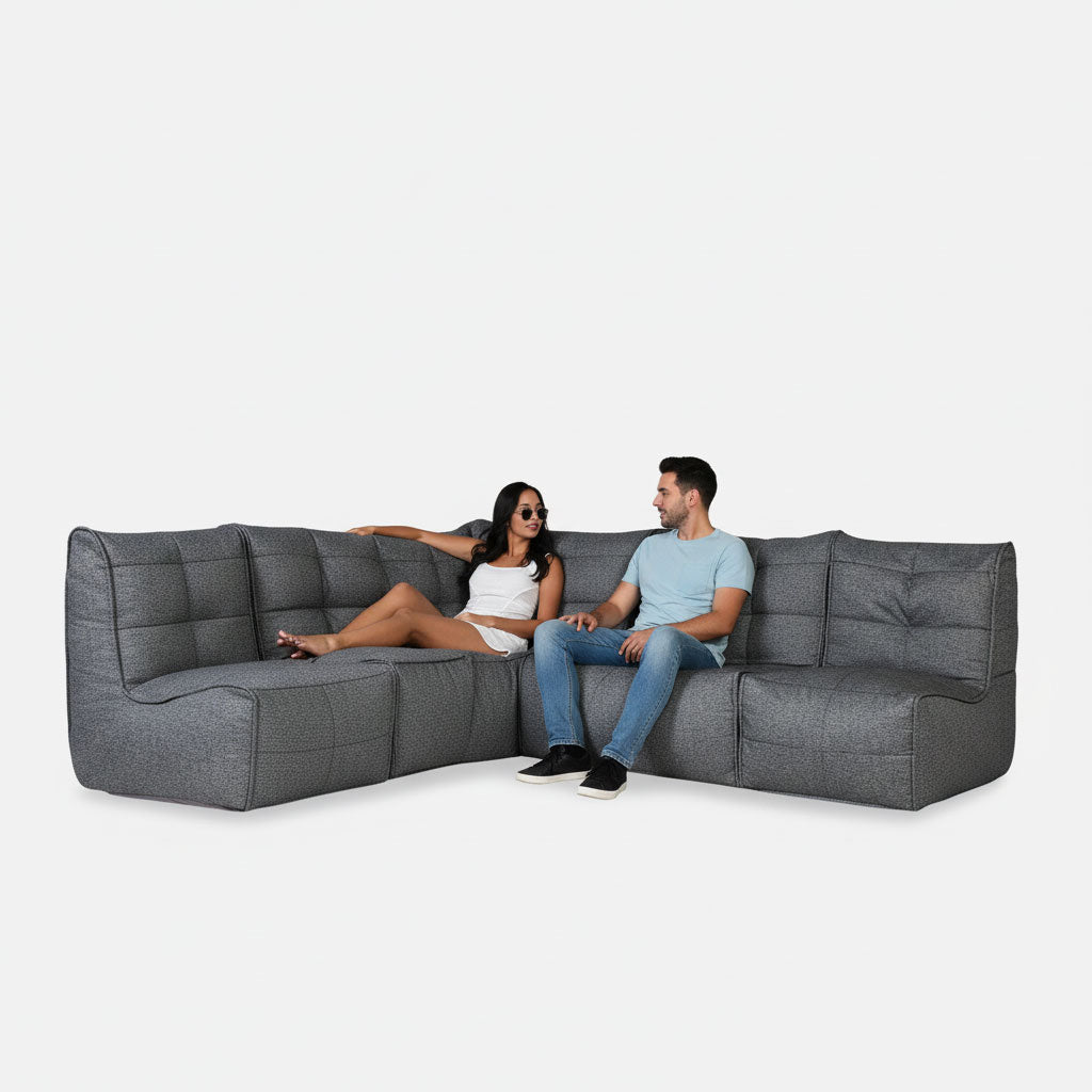 Ombyggda loftsrum, källarstudior, stora sovrum, musik- eller underhållningsrum och kompakta vardagsrum är perfekta för L-soffan. Den är också superlätt och kan enkelt bäras uppför trappor och pressas genom smalare öppningar för de som har begränsad tillgänglighet. Lägg till ett matchande Twin Ottoman eller Versa bord för extra flexibilitet och lyx.