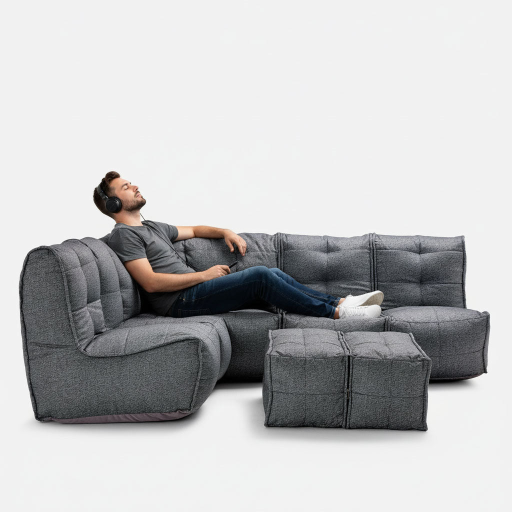 Denna populära Ambient Lounge® modulära konfiguration är idealisk för gemensamma bostadsutrymmen, familjerum, receptionsområden på kontor, episka underhållningsområden för barn, hemmabiosalar och möbler för Airbnb-lägenheter. Tillräckligt stor för att rymma upp till 4 personer samtidigt och med en perfekt kompakt design för stora hörn eller otraditionella placeringar – din soffgrupp kan vara hela ditt vardagsrum – till en bråkdel av priset för en traditionell soffgrupp.