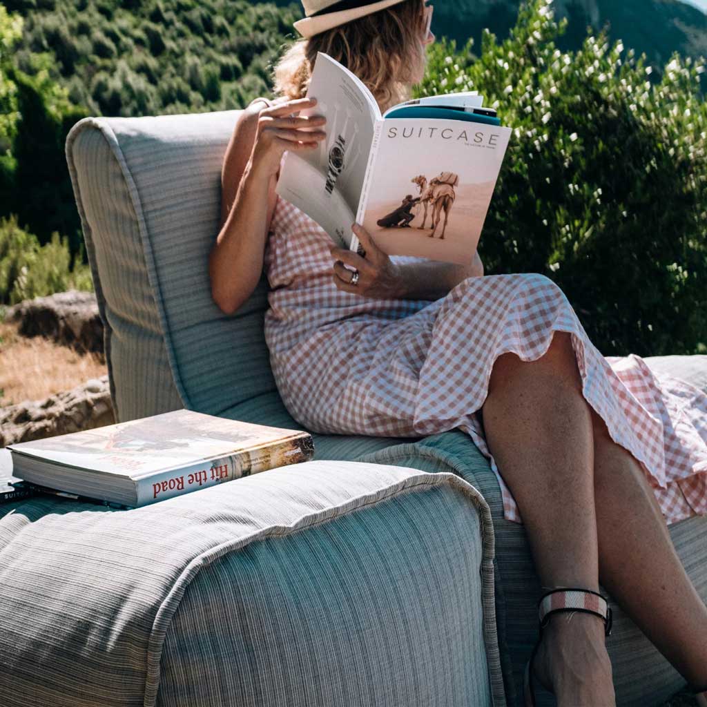 Ottoman Deluxe är storebror till Ottoman puffen. Här kan du sträcka ut benen och sänka axlarna. Tyget i denna puff är vattentätt och mjukt. Detta gör att den passar lika bra utomhus som inomhus. Puffen fungerar lika bra att sitta på om du behöver extra sittplatser när gästerna dyker upp, som att vila benen på.